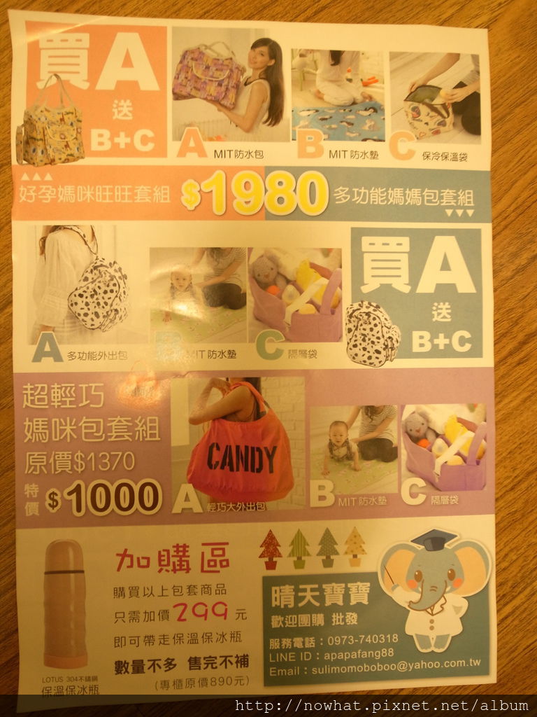 *媽媽包內袋: 有分大小, 一個190,2個350, 買了一大一小