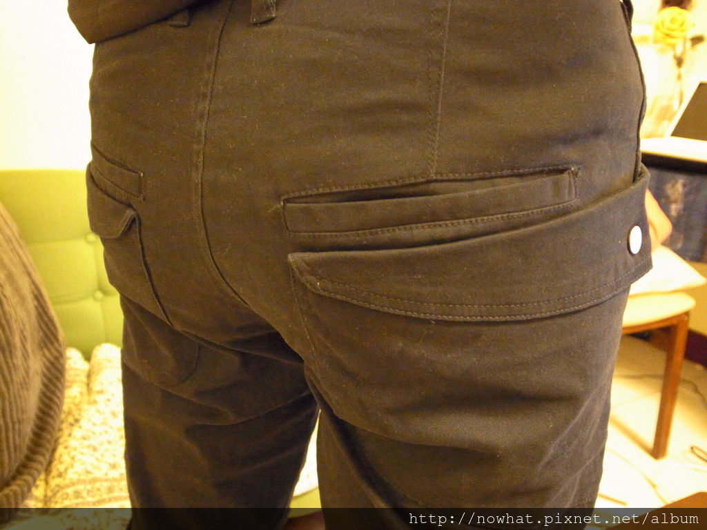 這件超級好看!! 剪裁超好, 口袋的設計也很特別 穿起來很顯瘦 很修飾老公的大屁股 XD